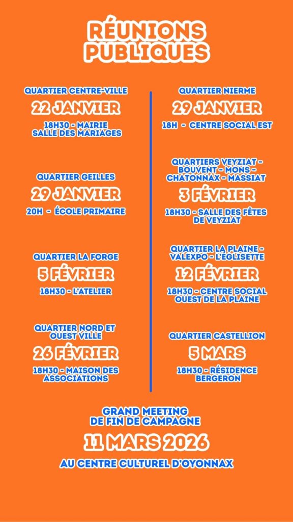 Venez à notre rencontre lors de nos prochaines réunions publiques :